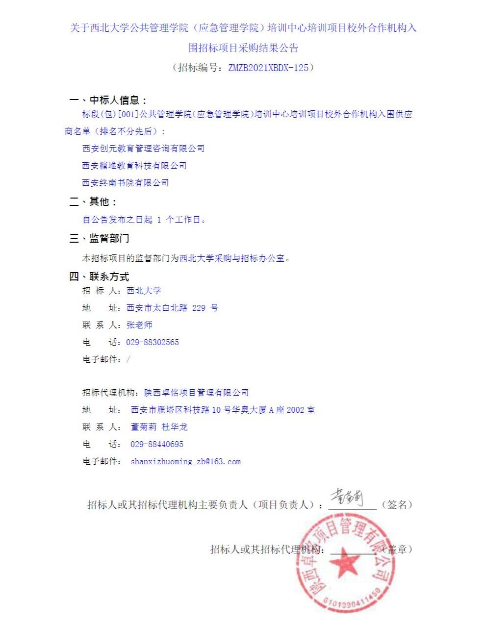 关于乐鱼网页版页面登录公共管理学院(应急管理学院)培训中心培训项目校外合作机构入围招标项目采购结果公告
