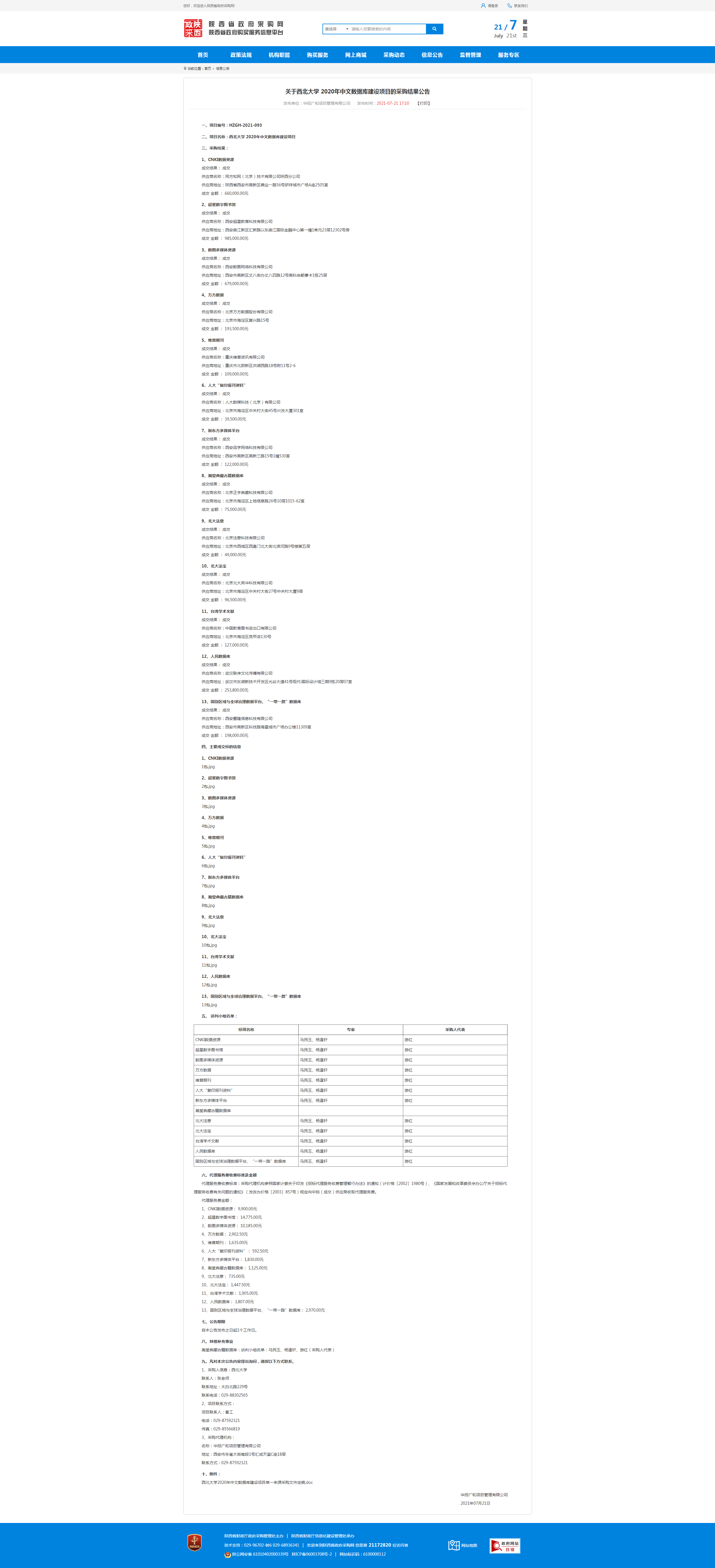 关于乐鱼网页版页面登录2020年中文数据库建设项目的采购结果公告