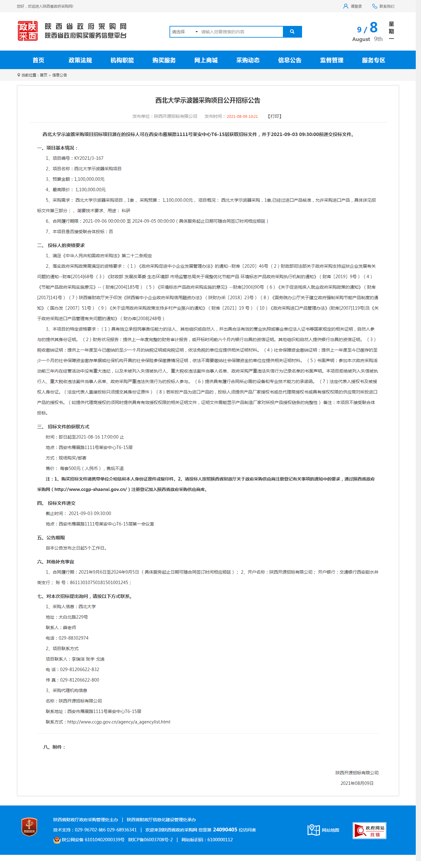 乐鱼网页版页面登录示波器采购项目公开招标公告 作者: 编辑:采购与招标办公室 时间:2021-08-09 原公告地址:http://www.ccgp-shaanxi.gov.cn/notice/noticeDetail.do?noticeguid=8a85be347b04610d017b28a3aa0f0939