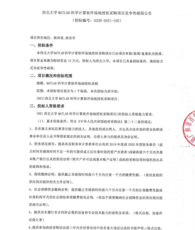 关于乐鱼网页版页面登录MATLAB科学计算软件场地授权采购项目竞争性磋商公告