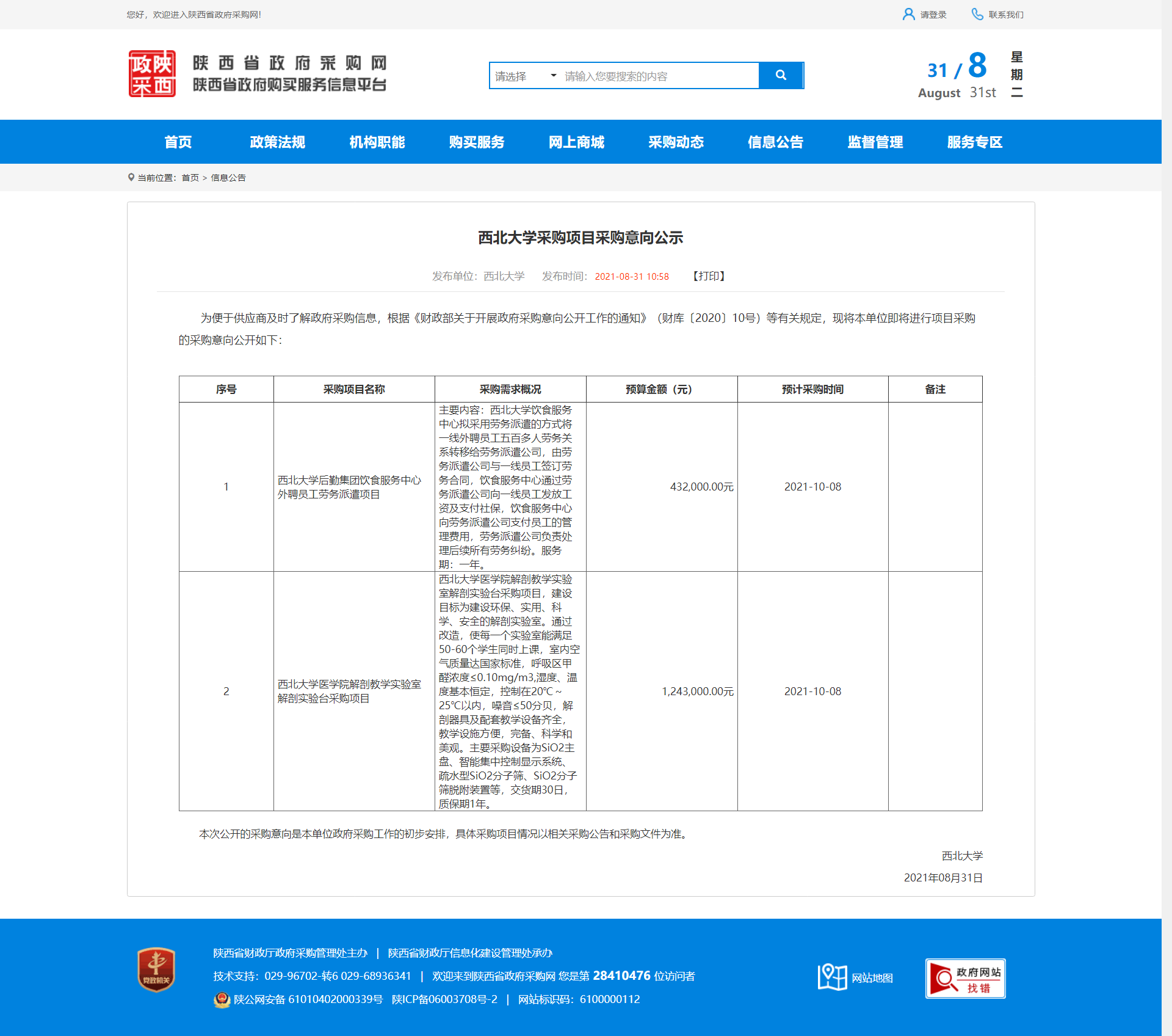 乐鱼网页版页面登录采购项目采购意向公示 作者: 编辑:采购与招标办公室 时间:2021-08-31 原公告地址:http://www.ccgp-shaanxi.gov.cn/notice/noticeDetail.do?noticeguid=8a85be337b0460f8017b9a22be817f9f