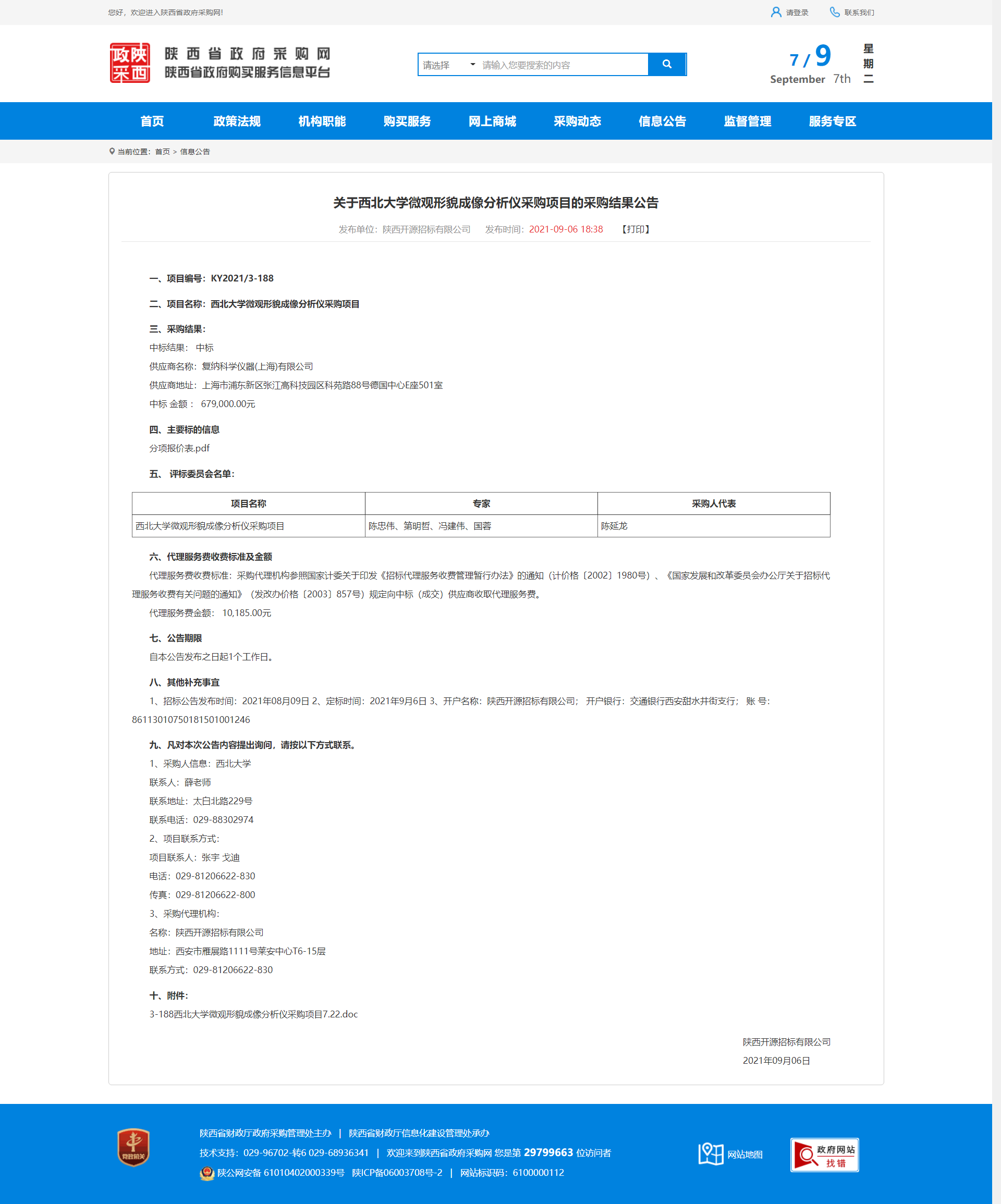 关于乐鱼网页版页面登录微观形貌成像分析仪采购项目的采购结果公告 作者: 编辑:采购与招标办公室 时间:2021-09-07 原公告地址:http://www.ccgp-shaanxi.gov.cn/notice/noticeDetail.do?noticeguid=8a85be347b04610d017bbaac92114f2e