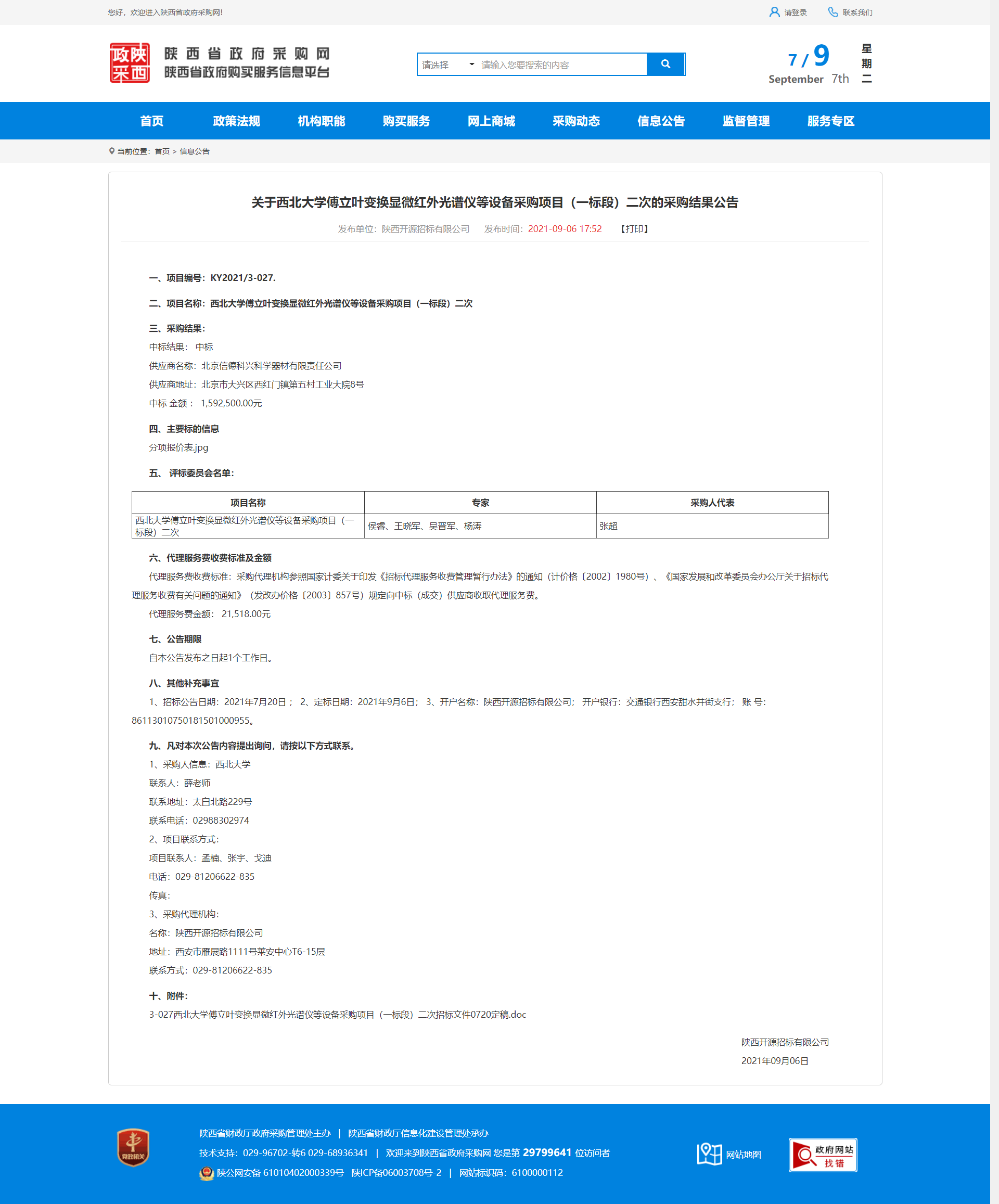 关于乐鱼网页版页面登录傅立叶变换显微红外光谱仪等设备采购项目(一标段)二次的采购结果公告 作者: 编辑:采购与招标办公室 时间:2021-09-07 原公告地址:http://www.ccgp-shaanxi.gov.cn/notice/noticeDetail.do?noticeguid=8a85be347b04610d017bba8364b14d06