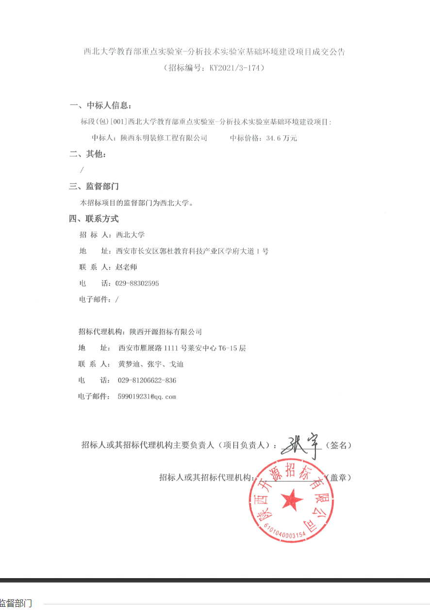 乐鱼网页版页面登录教育部重点实验室-分析技术实验室基础环境建设项目成交公告