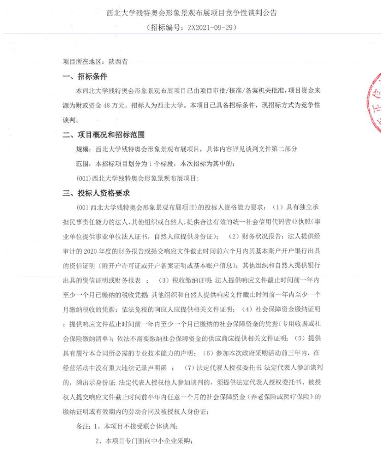 乐鱼网页版页面登录残特奥会形象景观布展项目竞争性谈判公告