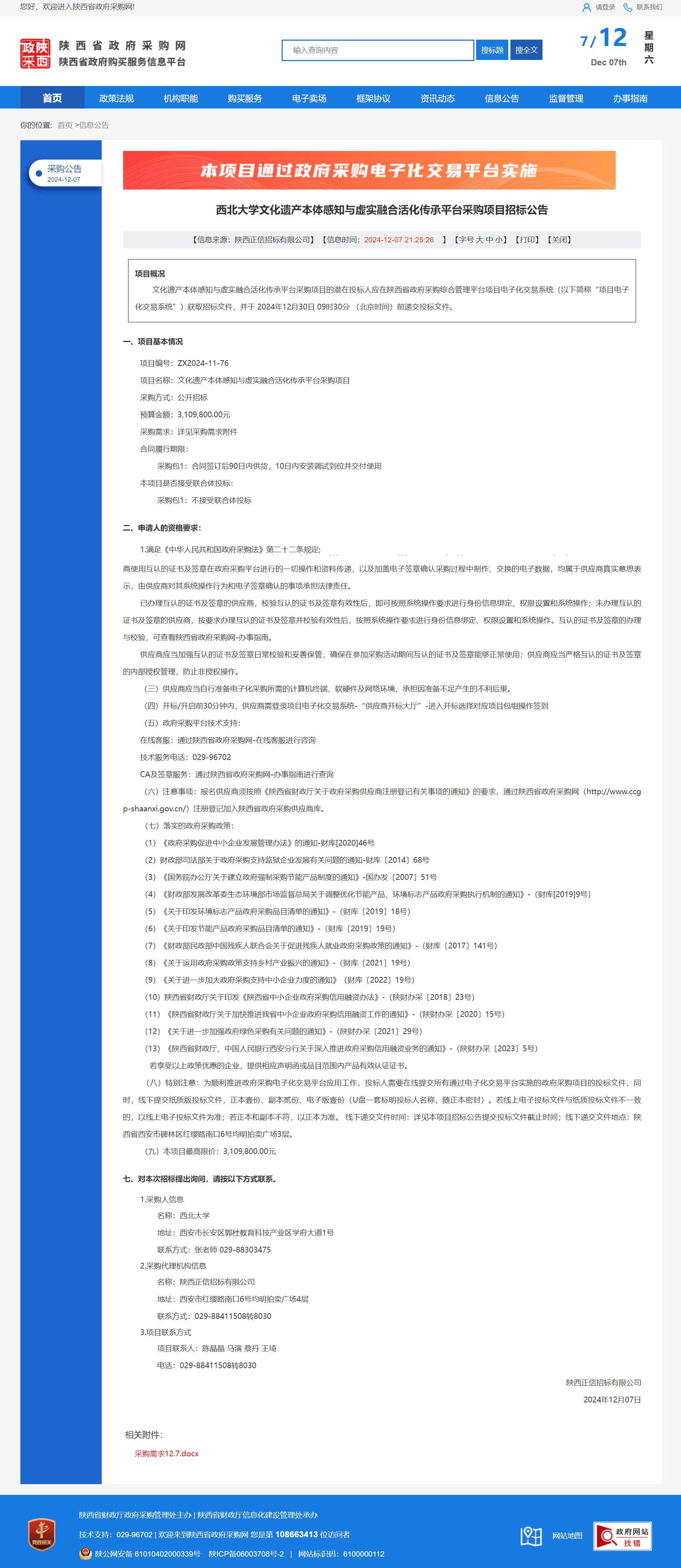 乐鱼网页版页面登录文化遗产本体感知与虚实融合活化传承平台采购项目招标公告