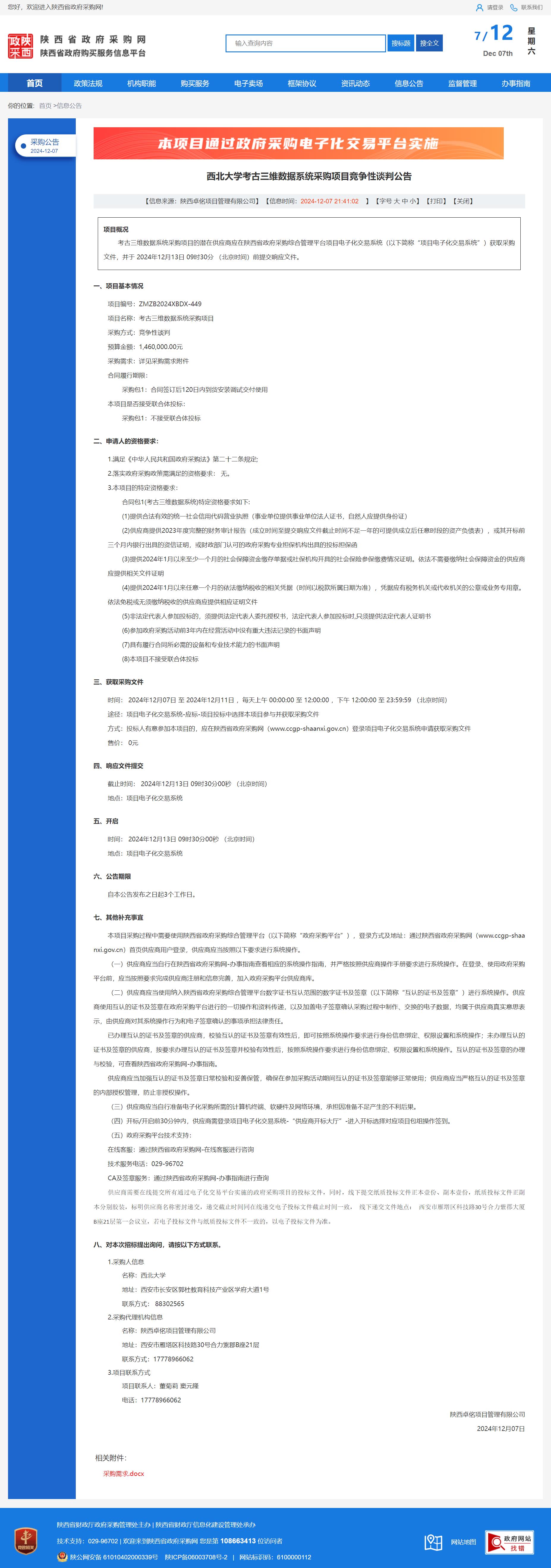 乐鱼网页版页面登录考古三维数据系统采购项目竞争性谈判公告
