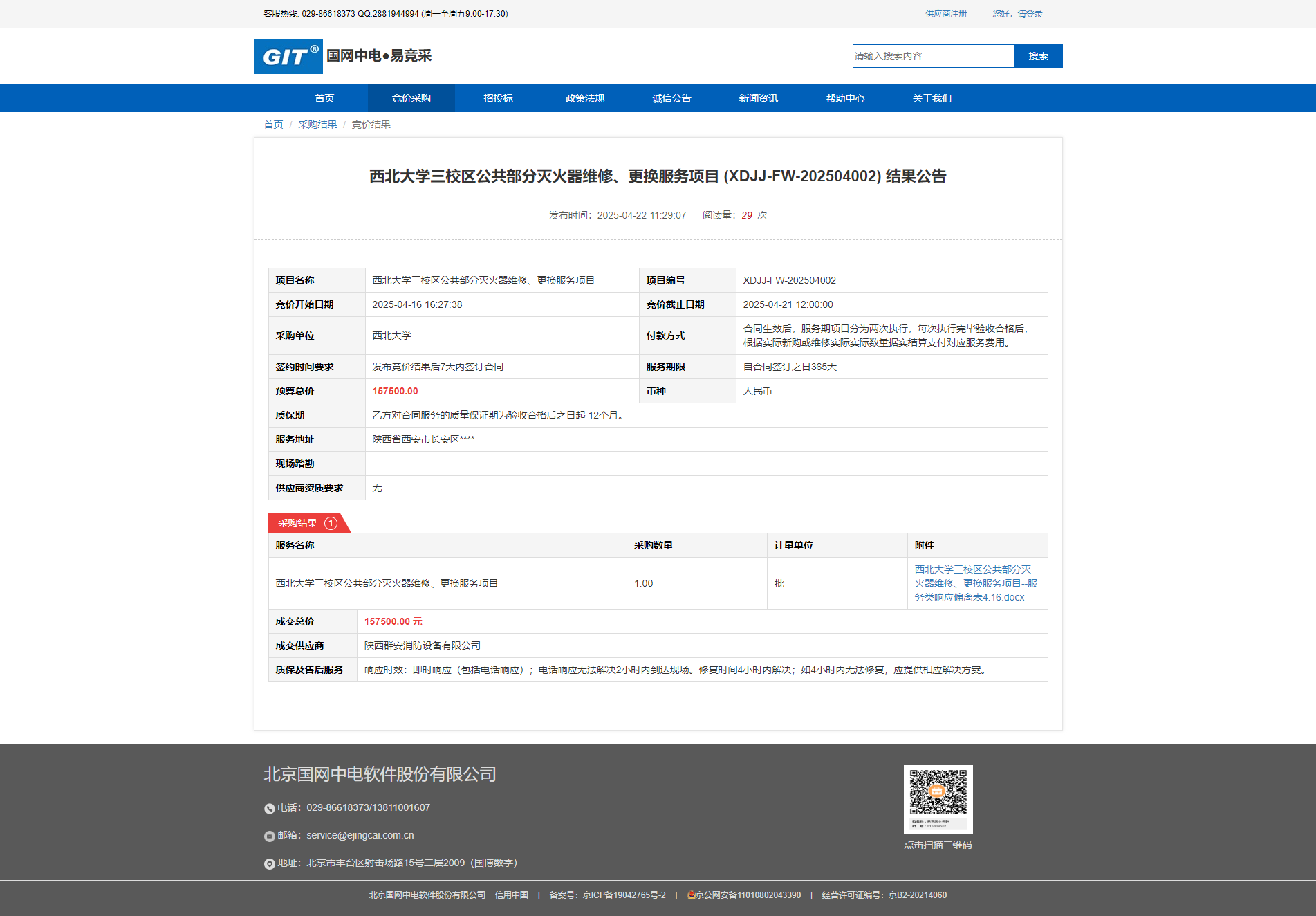 乐鱼网页版页面登录三校区公共部分灭火器维修、更换服务项目 (XDJJ-FW-202504002) 结果公告