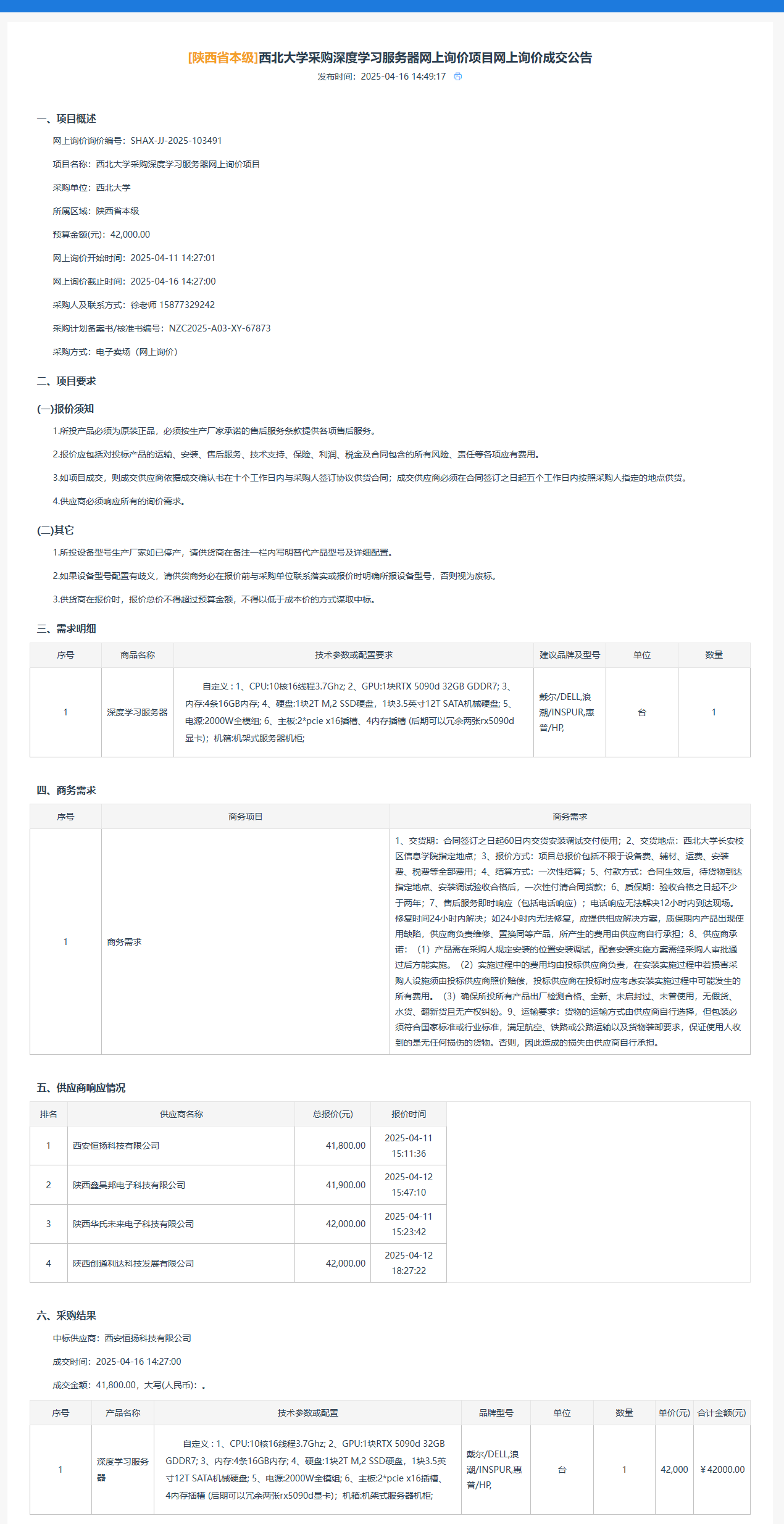 乐鱼网页版页面登录采购深度学习服务器网上询价项目网上询价成交公告 作者:采购与招标办公室 编辑: 时间:2025-04-23 原公告链接:https://www.ccgp-shaanxi.gov.cn/gpmall-main-web/basic/noticeDetail?noticeGuid=7311545629157818368