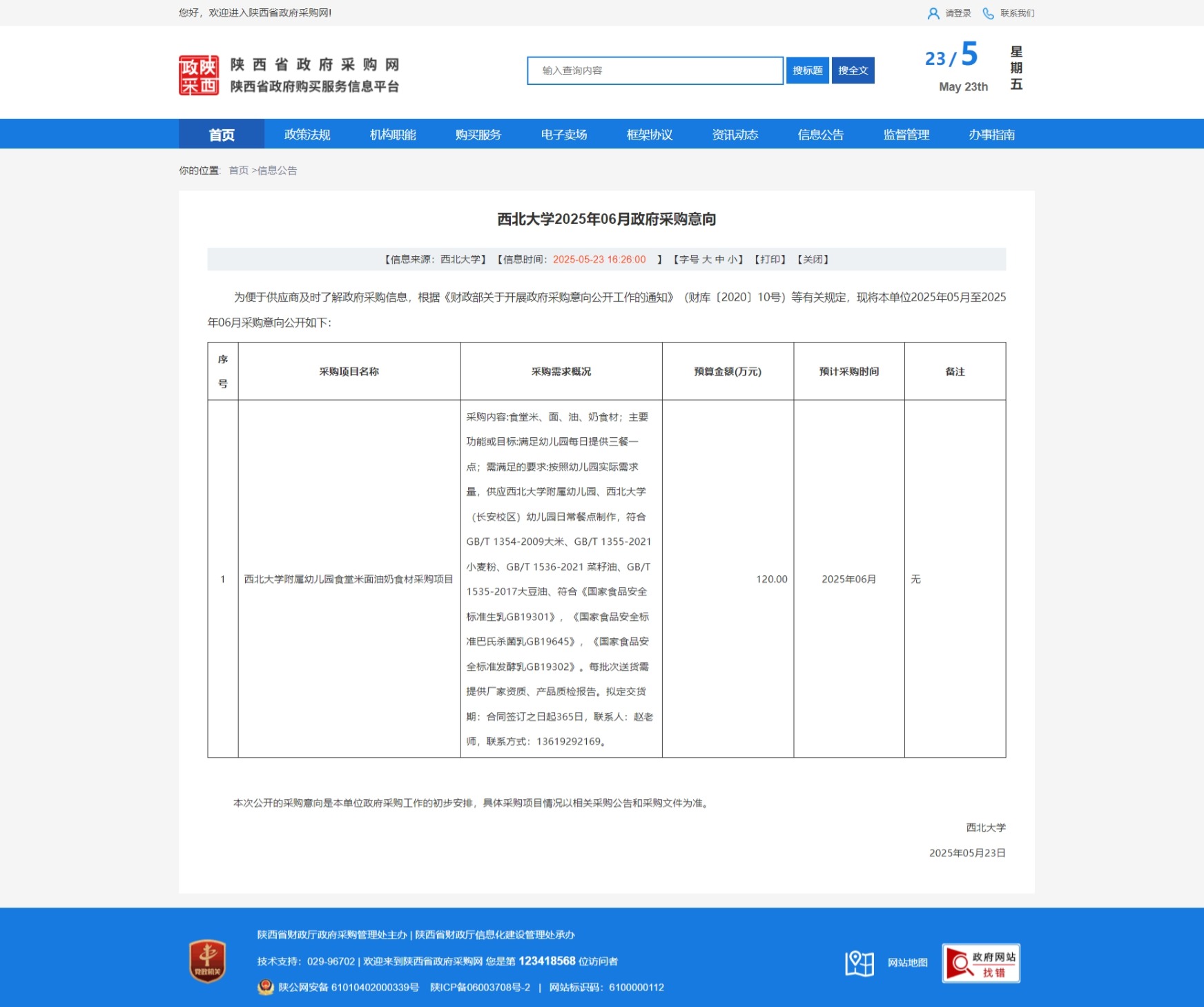 乐鱼网页版页面登录2025年06月政府采购意向 作者: 编辑:采购与招标办公室 时间:2025-05-23 原公告链接:https://www.ccgp-shaanxi.gov.cn/freecms/site/shaanxi/ggxx/info/2025/8a69c0ac96d0dacb0196fc3edc8d3d53.html?noticeType=59¬iceId=7a700226-37b1-11f0-8063-08c0eb20c666
