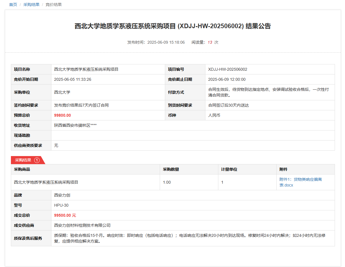 乐鱼网页版页面登录地质学系液压系统采购项目(XDJJ-HW-202506002)竞价结果公告 作者:采购与招标办公室 编辑: 时间:2025-06-09 原公告链接:https://www.ejingcai.com.cn/site/bidding/detail/18744