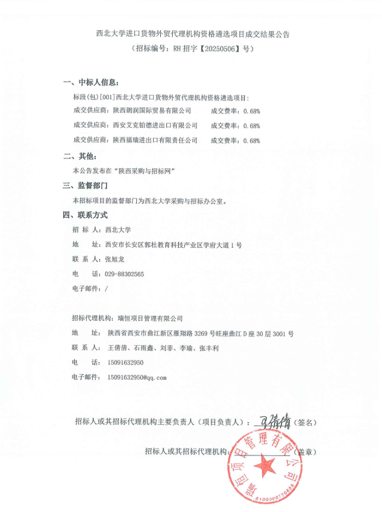 乐鱼网页版页面登录进口货物外贸代理机构资格遴选项目成交结果公告
