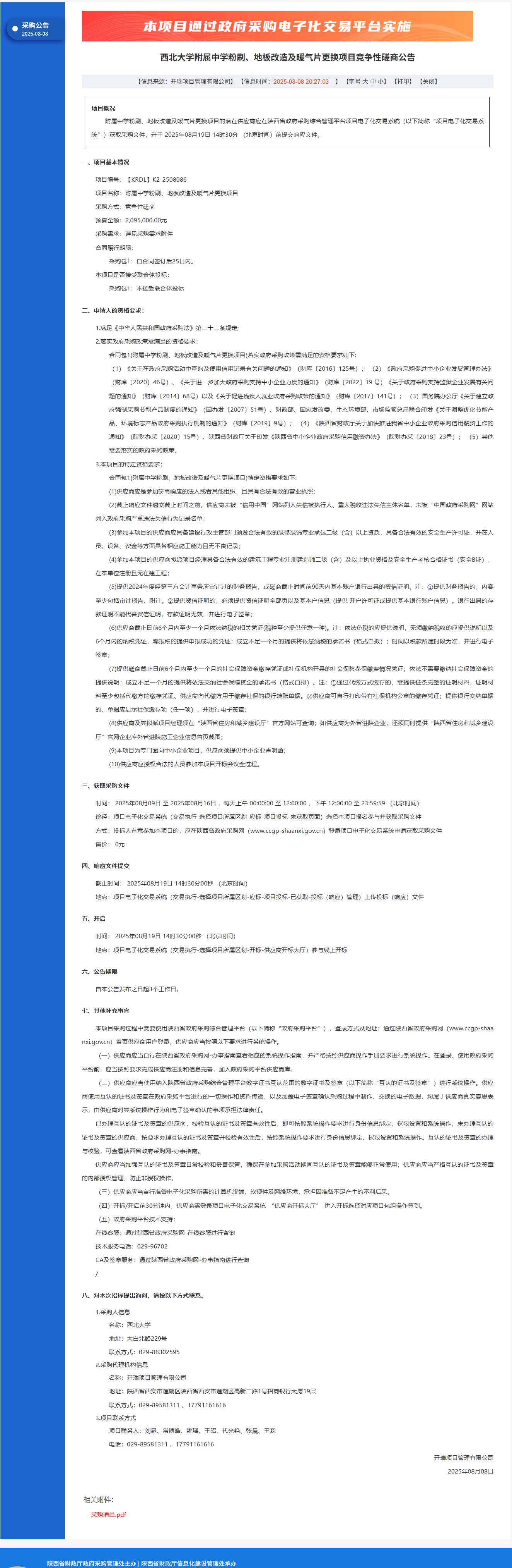 乐鱼网页版页面登录附属中学粉刷、地板改造及暖气片更换项目竞争性磋商公告 作者: 编辑:党丹珩 时间:2025-08-08 公告地址:https://www.ccgp-shaanxi.gov.cn/freecms/site/shaanxi/ggxx/info/2025/8a69c4d59860f6420198899b50a47f9c.html
