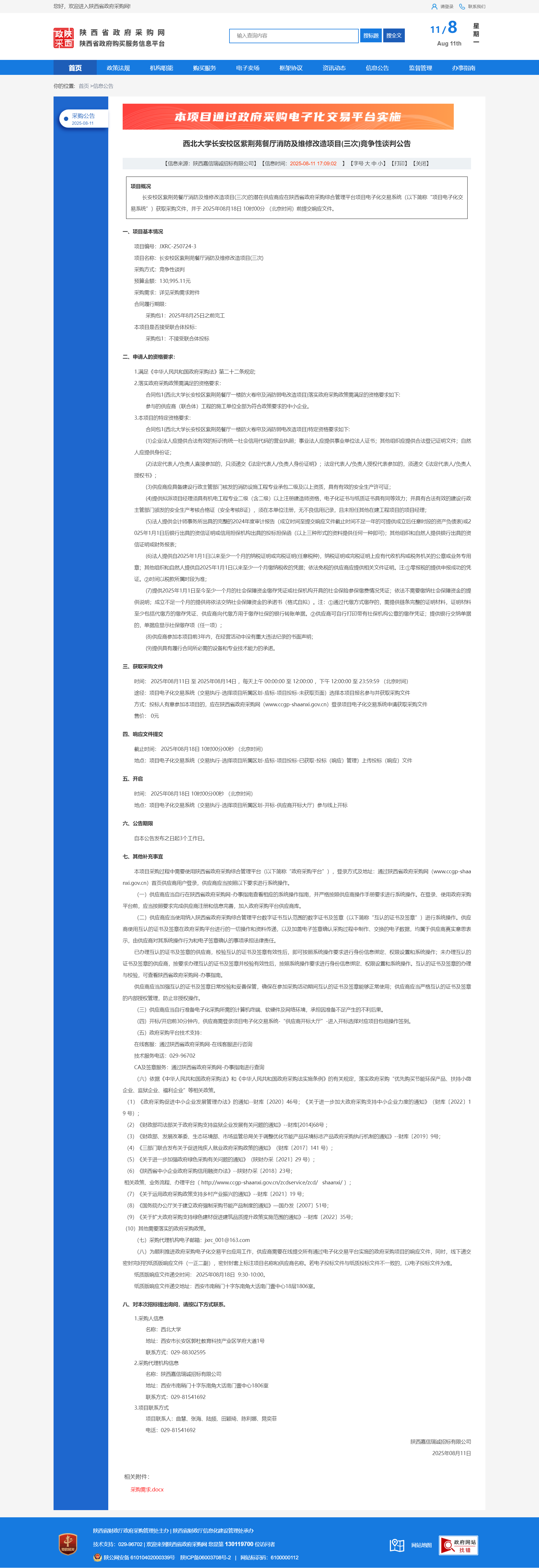 乐鱼网页版页面登录长安校区紫荆苑餐厅消防及维修改造项目(三次)竞争性谈判公告