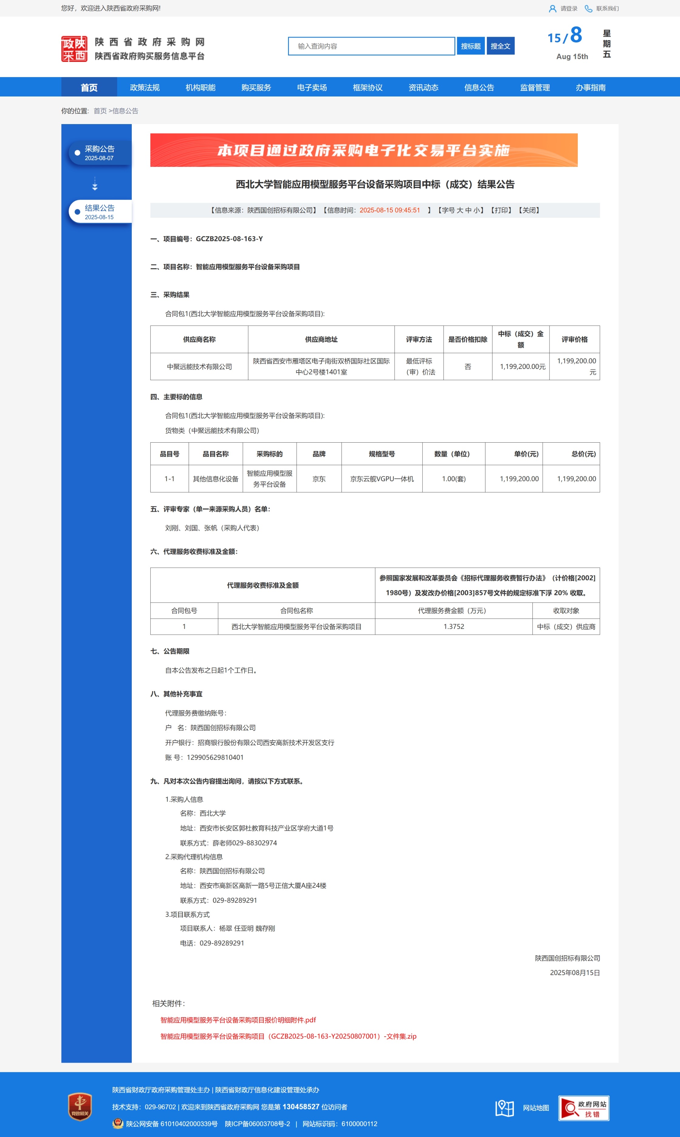 乐鱼网页版页面登录智能应用模型服务平台设备采购项目中标(成交)结果公告 作者: 编辑:采购与招标办公室 时间:2025-08-15 原公告链接:https://www.ccgp-shaanxi.gov.cn/freecms/site/shaanxi/ggxx/info/2025/8a69c4d59860f6420198ab5332c37fcf.html?noticeType=001023¬iceId=a3a64a26-797b-11f0-8063-08c0eb20c666