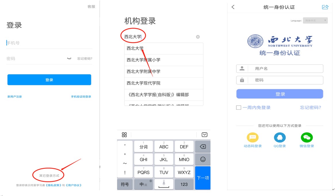 5.下载过后,进入登录页面——“其它登录方式”——单位栏输入“乐鱼网页版页面登录”——跳转到学校统一身份认证登录。