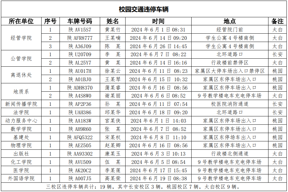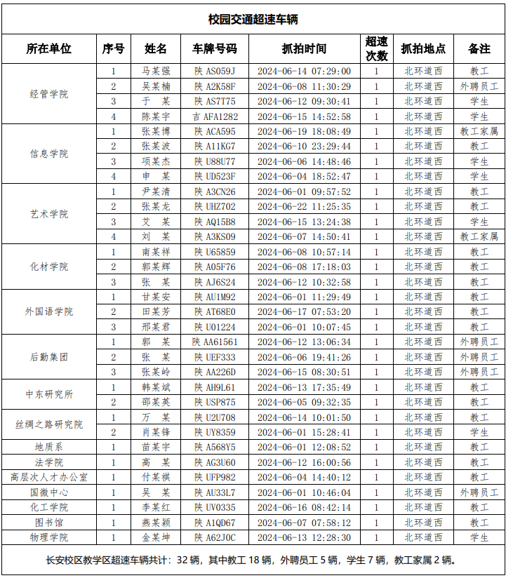为加强校内道路交通安全管理,规范校内交通秩序,根据《乐鱼网页版页面登录校园道路交通管理办法》有关要求,现将2024年6月校园交通违章车辆予以曝光,所在单位负责对本单位违章师生员工进行交通安全教育和日常管理,对于校内曝光超速的学生车辆将取消下一年度的通行证办理资格。