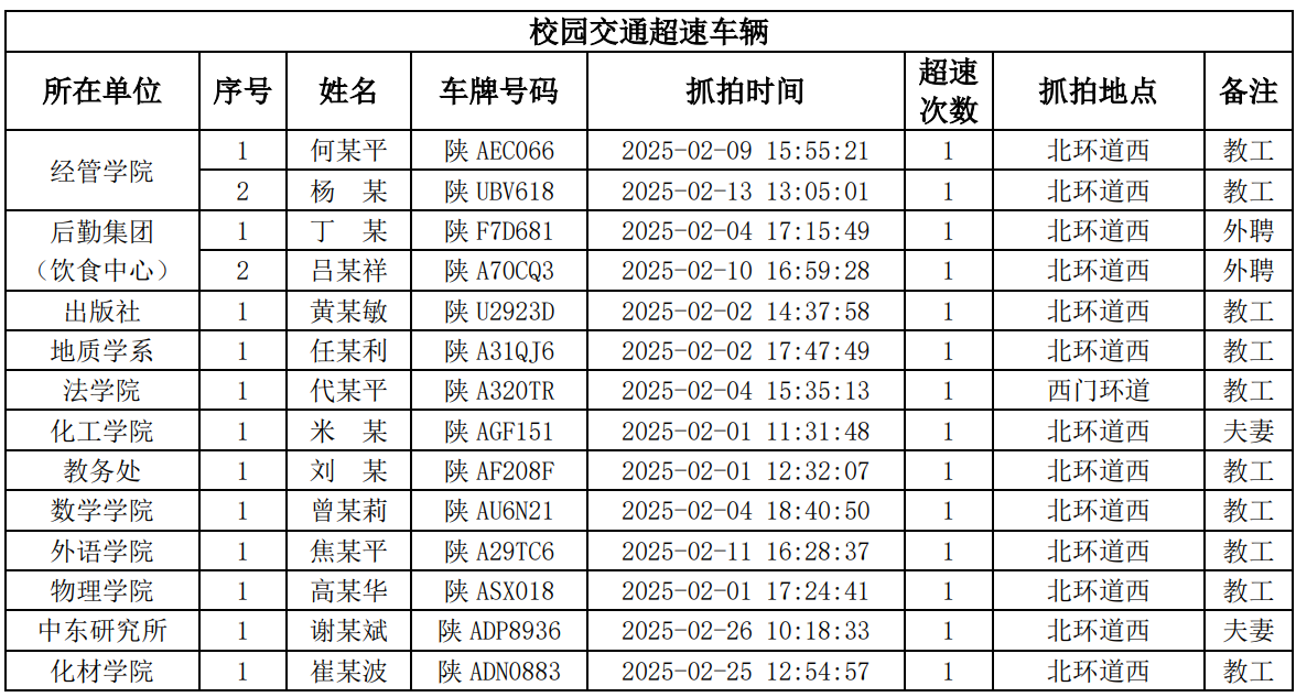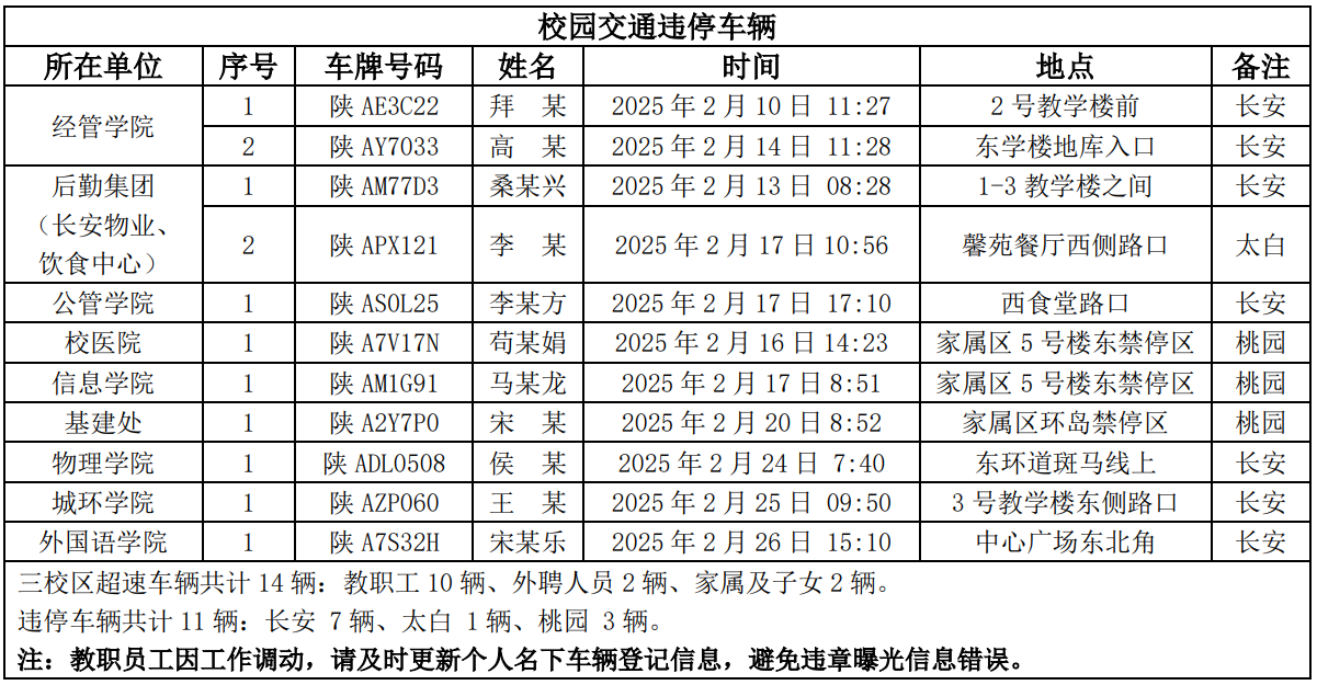 为进一步加强校园交通管理,保障校园交通安全有序,维护学校正常的教学、科研和生活秩序,切实保护师生员工的人身财产安全,根据《乐鱼网页版页面登录校园交通安全管理规定》的相关要求,现将2025年2月校园交通违章车辆予以曝光,具体要求与违章信息如下。
