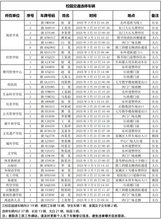 为进一步加强校园交通管理,保障校园交通安全有序,维护学校正常的教学、科研和生活秩序,切实保护师生员工的人身财产安全,根据《乐鱼网页版页面登录校园交通安全管理规定》的相关要求,现将2025年3月校园交通违章车辆予以曝光,具体要求与违章信息如下: