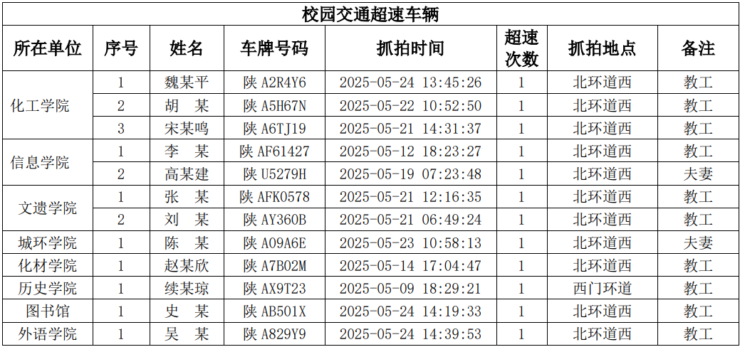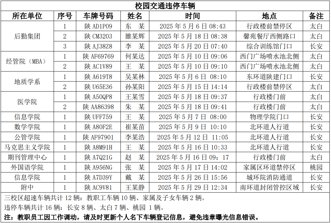 为进一步加强校园交通管理,保障校园交通安全有序,维护学校正常的教学、科研和生活秩序,切实保护师生员工的人身财产安全,根据《乐鱼网页版页面登录校园交通安全管理规定》的相关要求,现将2025年5月校园交通违章车辆予以曝光,具体要求与违章信息如下: