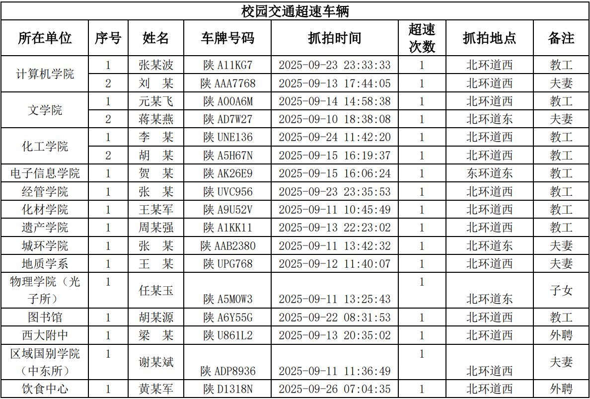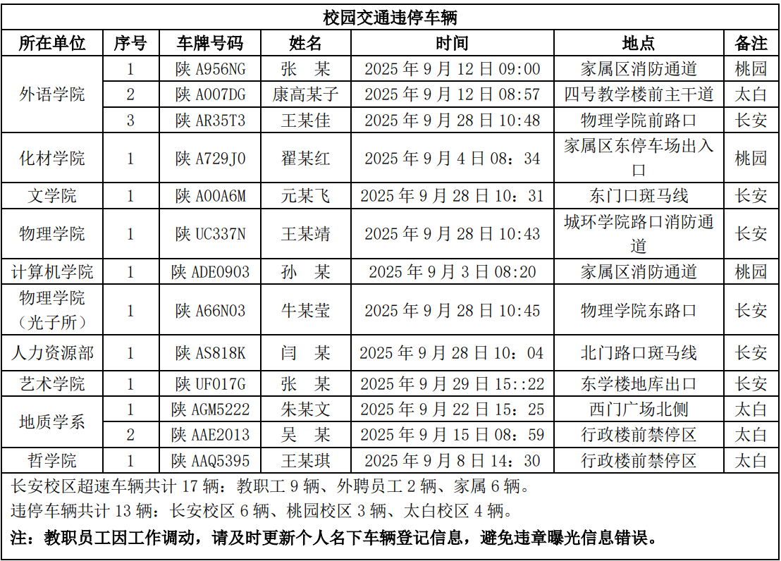 为进一步加强校园交通管理,保障校园交通安全有序,维护学校正常的教学、科研和生活秩序,切实保护师生员工的人身财产安全,根据《乐鱼网页版页面登录校园交通安全管理规定》的相关要求,现将2025年9月校园交通违章车辆予以曝光,具体要求与违章信息如下: