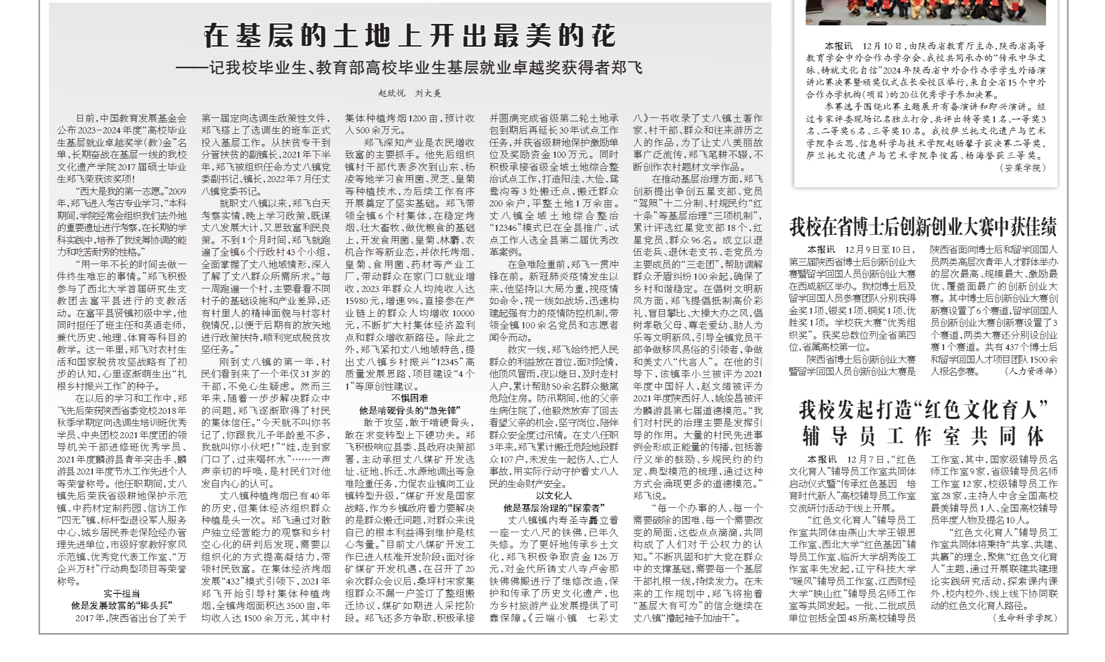 日前,中国教育发展基金会公布2023-2024年度“高校毕业生基层就业卓越奖学(教)金”名单,长期奋战在基层一线的乐鱼网页版页面登录文化遗产学院2017届硕士毕业生郑飞荣获该奖项!