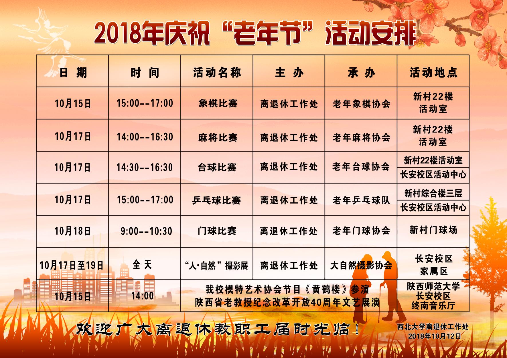 2018年庆祝“老年节”活动安排