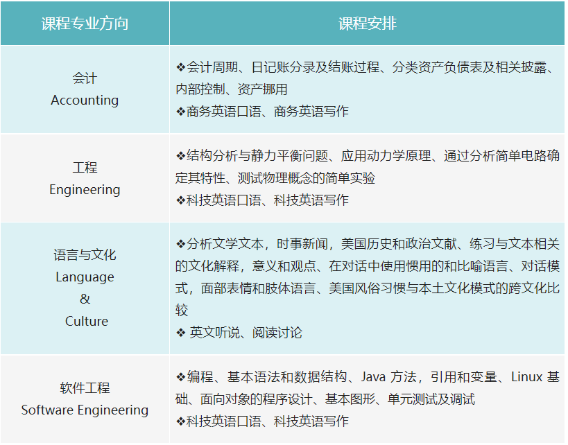 【顶尖专业】提供全美顶尖专业课程:会计、工程、软件工程、语言与文化;