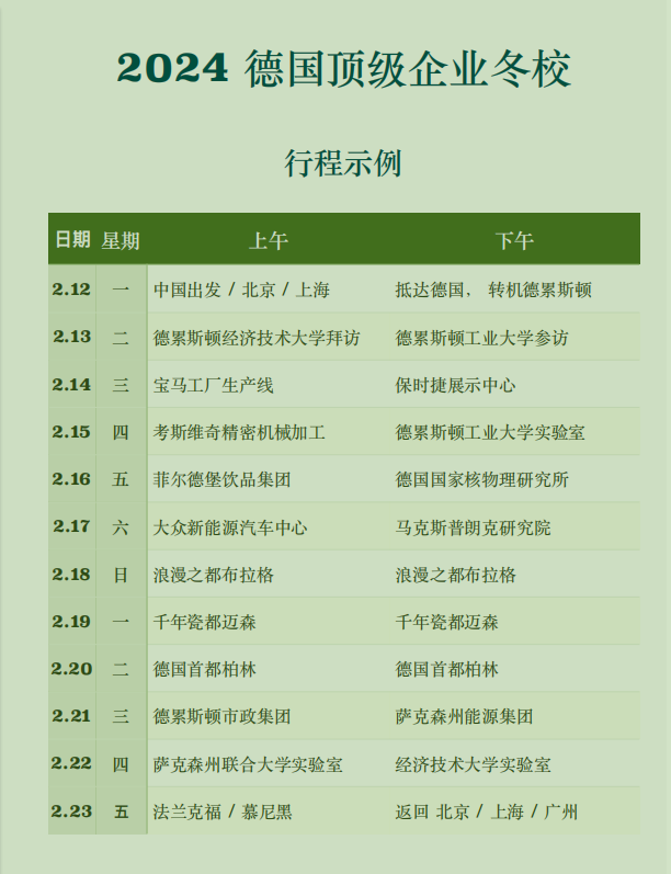 “2024年德国顶级企业冬校项目”由德国德累斯顿经济技术大学、德累斯顿工业大学、萨克森州联合大学共同举办,为来访学⽣提供最前沿的科研、教学、⽣产、管理现场交流和学习的机会。