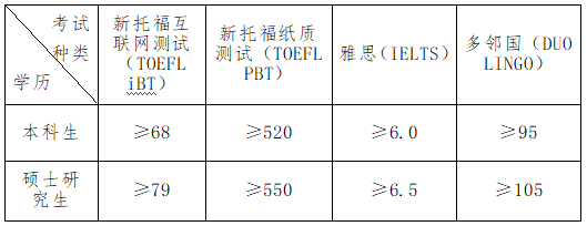 3.英语语言成绩要求(详见附件1 项目手册):