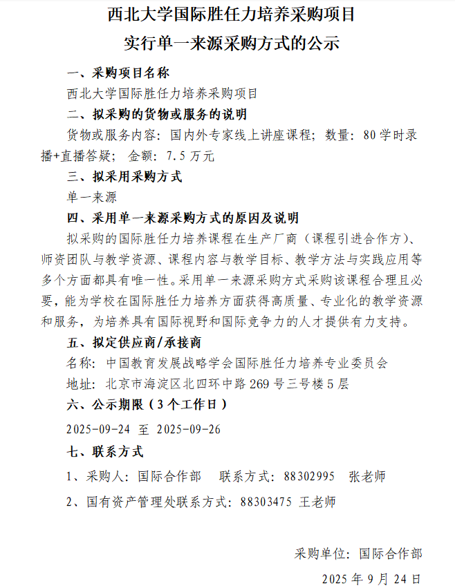 乐鱼网页版页面登录国际胜任力培养采购项目实行单一来源采购方式的公示