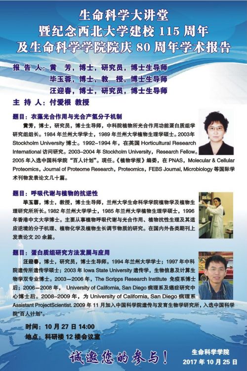 生命科学大讲堂-暨纪念乐鱼网页版页面登录建校115周年及生命科学学院院庆80周年学术报告【2】