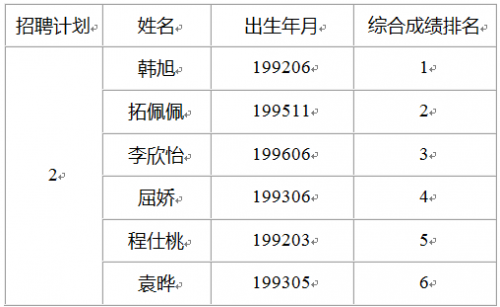 信息学院2019年公开招聘B类人事代理人员公示 作者: 编辑: 时间:2019-05-09 15:09 经资格审核、笔试、综合面试,现将信息学院2019年公开招聘B类人事代理行政管理人员考察结果进行公示,按成绩由高向低排序,按招聘计划1 :3的比例公示如下:公示时间:2019年5月9日至2019年5月11日。公示期间,如有异议,请以书面形式向乐鱼网页版页面登录信息学院反映。联系电话:88308119。信息科学与技术学院2019年5月9日