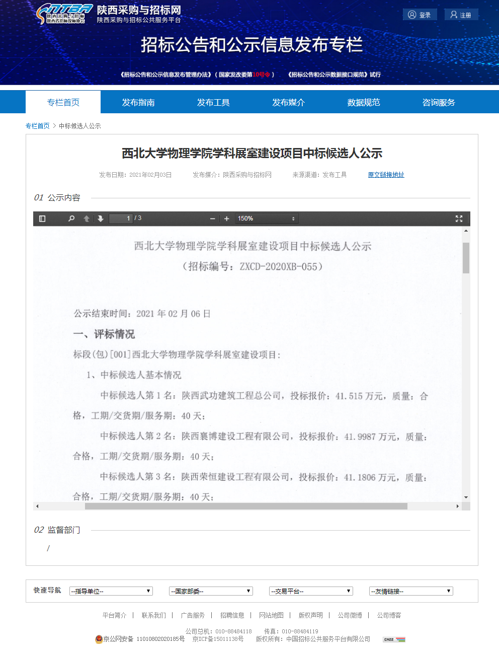 乐鱼网页版页面登录物理学院学科展室建设项目中标候选人公示 作者: 编辑:郭平 时间:2021-02-03 http://bulletin.sntba.com/candidateBulletin/2021-02-03/269328.html