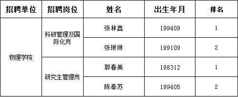 物理学院公开招聘B类人事代理人员结果公示 作者: 编辑: 时间:2019-06-13 09:18 根据《乐鱼网页版页面登录物理学院公开招聘管理人员公告》的工作安排,经自主报名、资格审核、初试和复试环节,现将拟录用人员名单公示如下:公示时间:2019年6月13日至2019年6月15日。公示期内,如有异议,请以书面形式向乐鱼网页版页面登录物理学院反映。联系电话:88303384。物理学院2019年6月13日