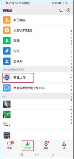 进入微信后,点击屏幕下方的“通信录”,在通信录中点击“乐鱼网页版页面登录”(如图3所示),通过通信录进入乐鱼网页版页面登录企业号后,点击“企业应用”菜单项(如图4所示),即可显示乐鱼网页版页面登录企业号里集成的所有应用服务。