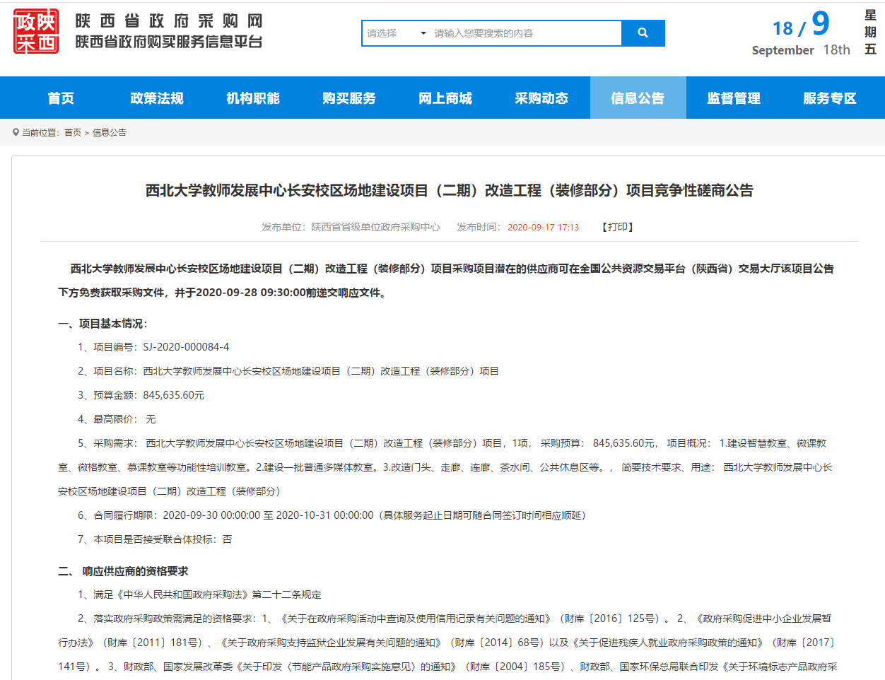 乐鱼网页版页面登录教师发展中心长安校区场地建设项目(二期)改造工程(装修部分)项目竞争性磋商公告 作者: 编辑:季兴帅 时间:2020-09-18 公告原文链接:http://www.ccgp-shaanxi.gov.cn/notice/noticeDetail.do?noticeguid=8a85be327394d739017499e718111004