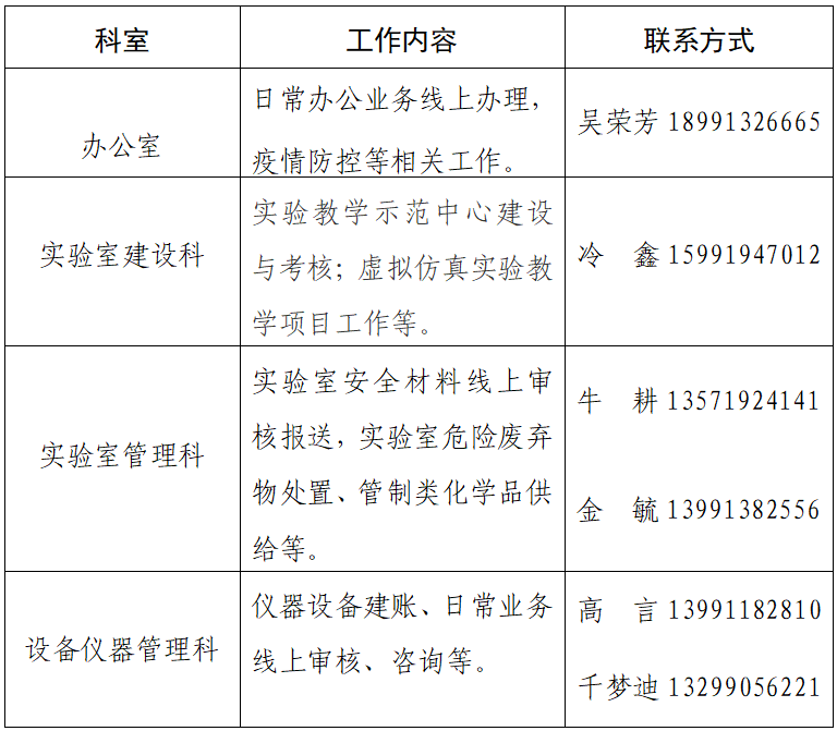 疫情防控期间,实验室建设与管理处根据防控要求开展线上办公,具体安排如下: