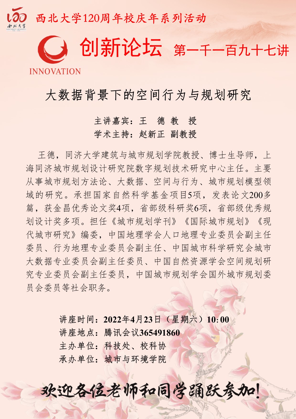 乐鱼网页版页面登录创新论坛第一千一百九十七讲暨120周年校庆年系列活动:大数据背景下的空间行为与规划研究