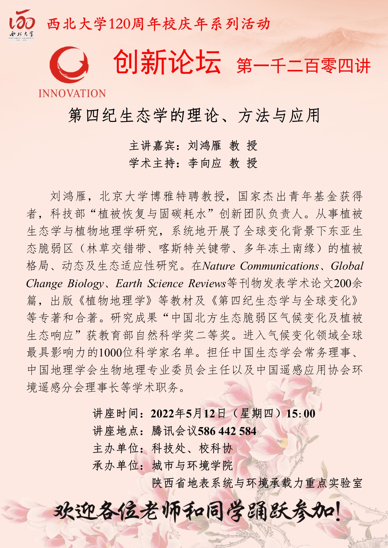 乐鱼网页版页面登录创新论坛第一千二百零四讲暨120周年校庆年系列活动:第四纪生态学的理论、方法与应用