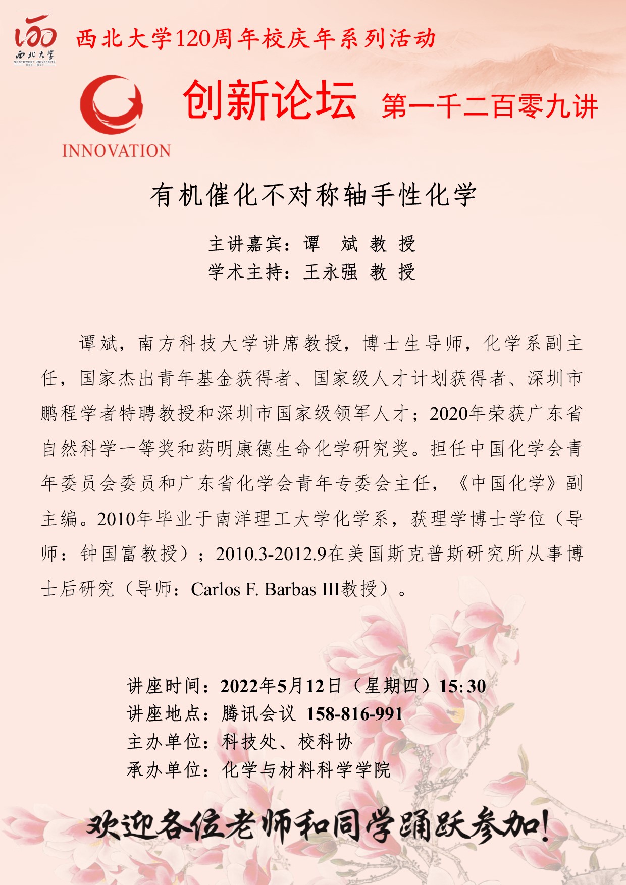 乐鱼网页版页面登录创新论坛第一千二百一十讲暨120周年校庆年系列活动:多环天然产物合成中的环系构建