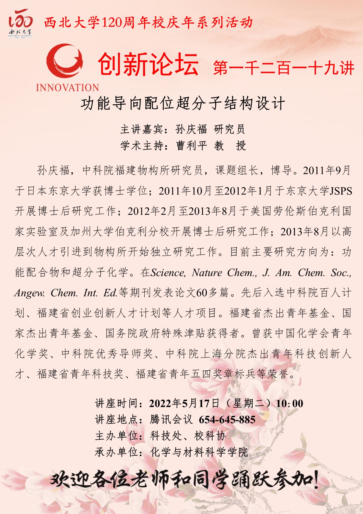 乐鱼网页版页面登录创新论坛第一千二百一十九讲暨120周年校庆年系列活动:功能导向配位超分子结构设计