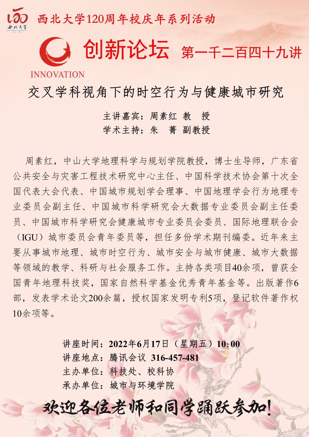 乐鱼网页版页面登录创新论坛第一千二百四十九讲暨120周年校庆年系列活动:交叉学科视角下的时空行为与健康城市研究