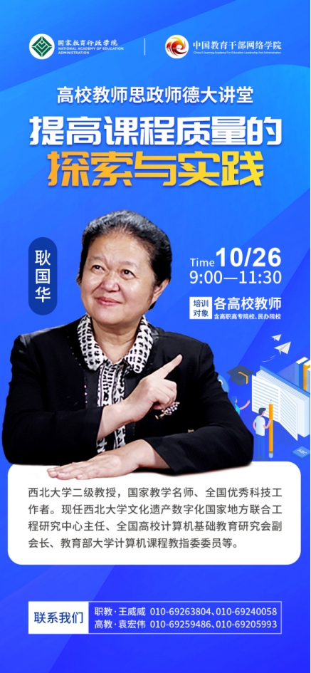 为学习贯彻落实党的二十大精神,以正确的政治方向和价值导向引领广大教师思想政治素质、师德素养和业务能力全面提升,国家教育行政学院中国教育干部网络学院将举办高校教师思政师德大讲堂,邀请乐鱼网页版页面登录耿国华教授作题为《提高课程质量的探索与实践》的报告,欢迎乐鱼网页版页面登录广大教师积极观看学习。