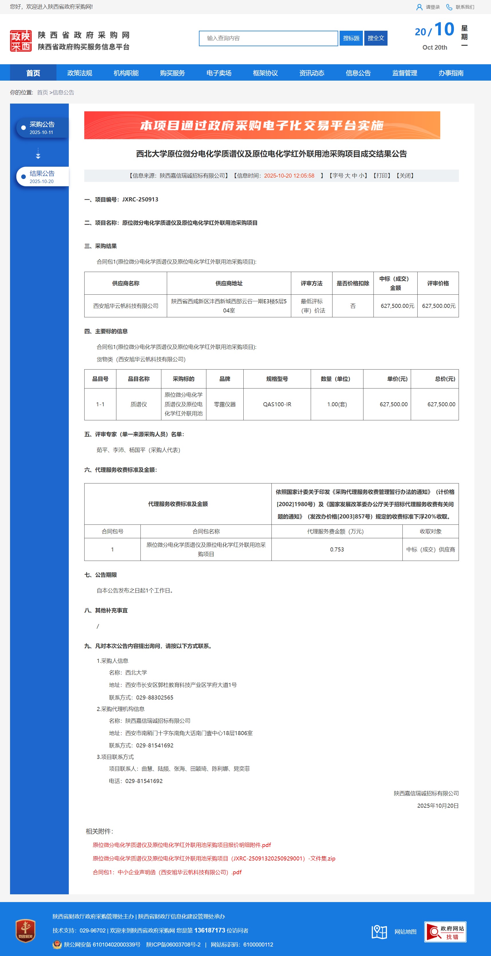 乐鱼网页版页面登录原位微分电化学质谱仪及原位电化学红外联用池采购项目成交结果公告