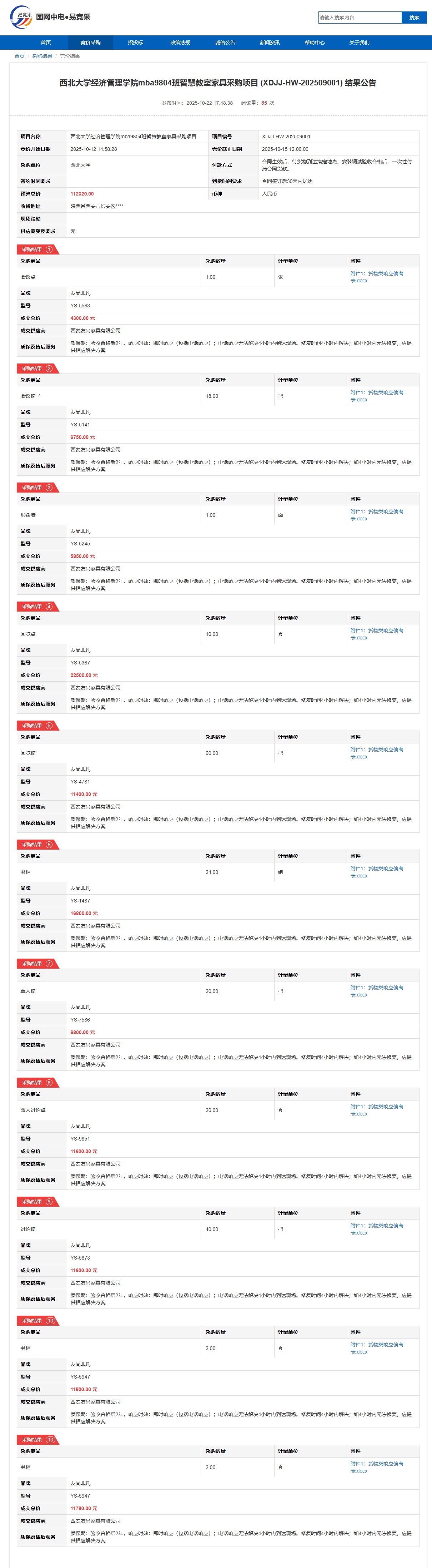 乐鱼网页版页面登录经济管理学院mba9804班智慧教室家具采购项目(XDJJ-HW-202509001)竞价结果公告