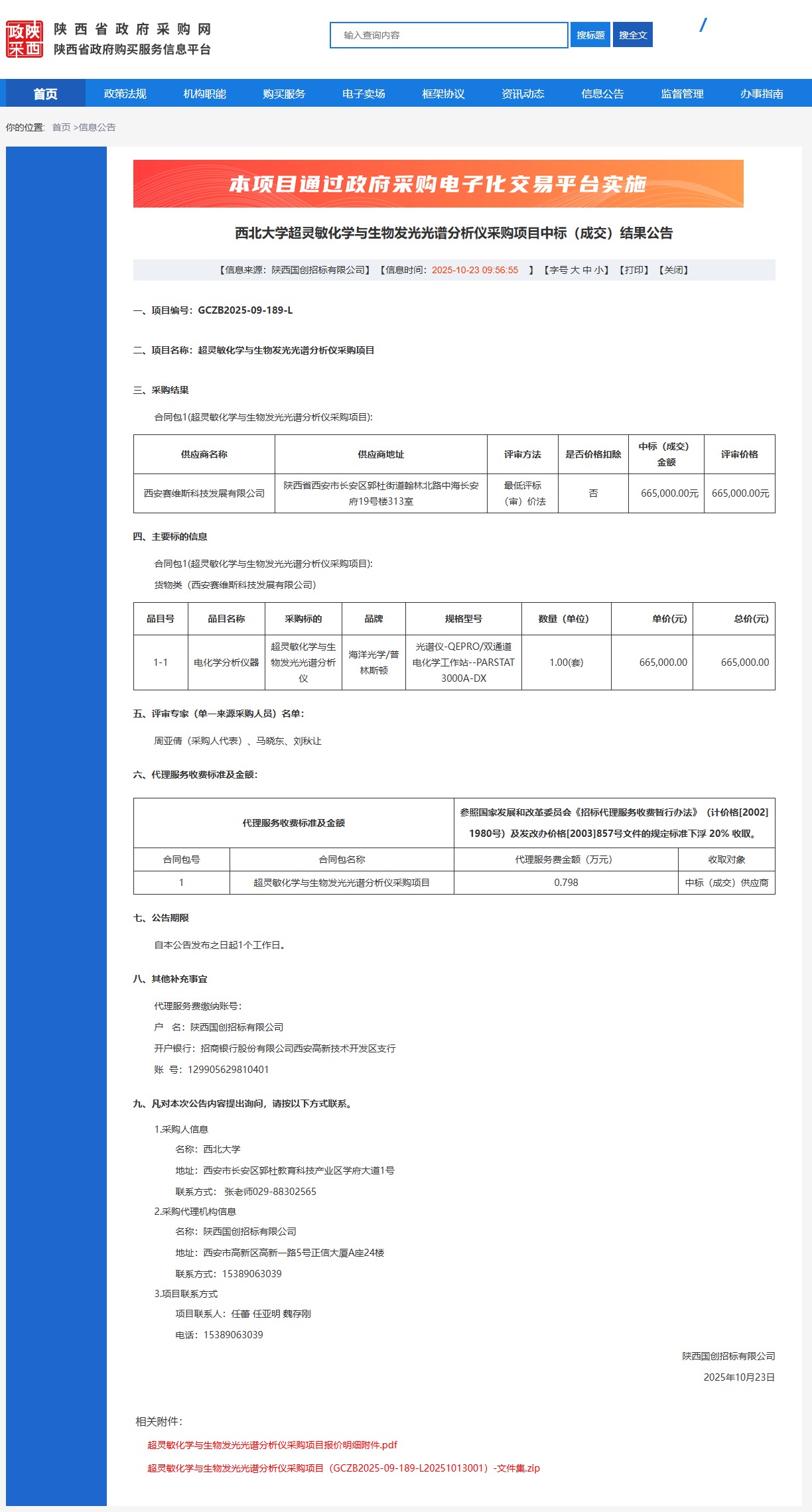 乐鱼网页版页面登录超灵敏化学与生物发光光谱分析仪采购项目中标(成交)结果公告
