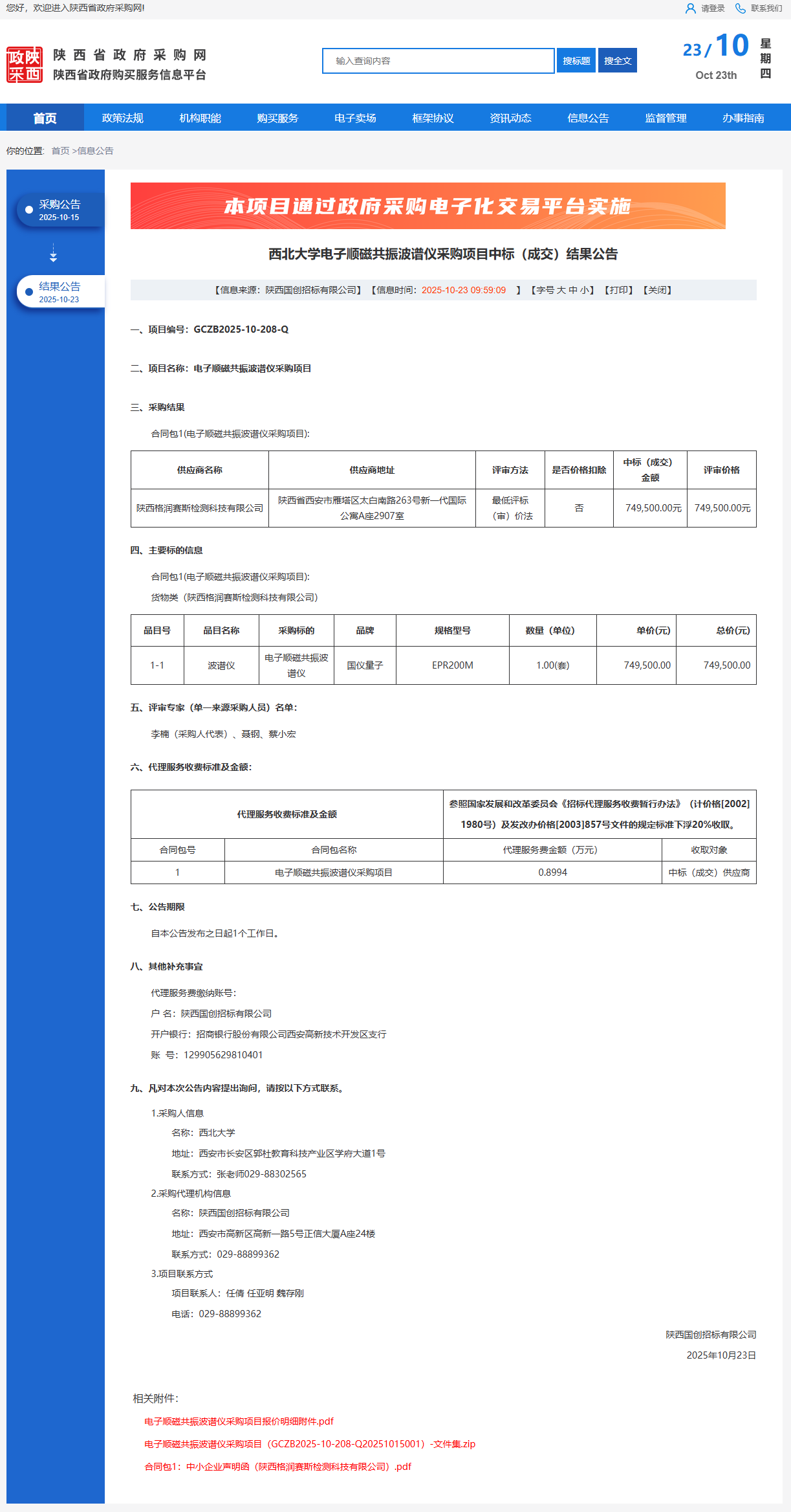 乐鱼网页版页面登录电子顺磁共振波谱仪采购项目中标(成交)结果公告