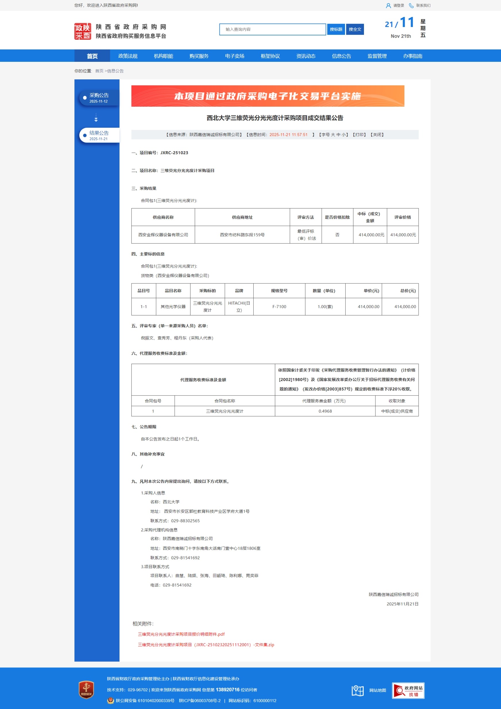 乐鱼网页版页面登录三维荧光分光光度计采购项目成交结果公告 作者:国有资产管理处 编辑:国有资产管理处 时间:2025-11-21 原公告链接:https://www.ccgp-shaanxi.gov.cn/freecms/site/shaanxi/ggxx/info/2025/8a69c0019a9a55ca019aa4229c8b6f4d.html?noticeType=001023¬iceId=7c2bb784-c690-11f0-8063-08c0eb20c666