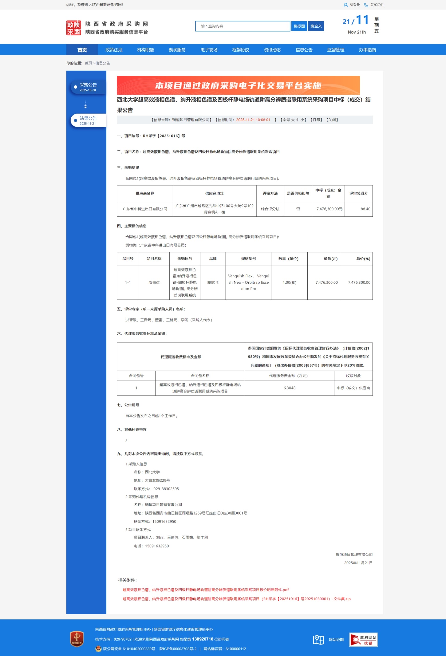 乐鱼网页版页面登录超高效液相色谱、纳升液相色谱及四极杆静电场轨道阱高分辨质谱联用系统采购项目中标(成交)结果公告 作者:国有资产管理处 编辑:国有资产管理处 时间:2025-11-21 原公告链接:https://www.ccgp-shaanxi.gov.cn/freecms/site/shaanxi/ggxx/info/2025/8a69c90c9a9ae48e019aa4271c2e478e.html?noticeType=001021¬iceId=23cedee1-c681-11f0-8063-08c0eb20c666